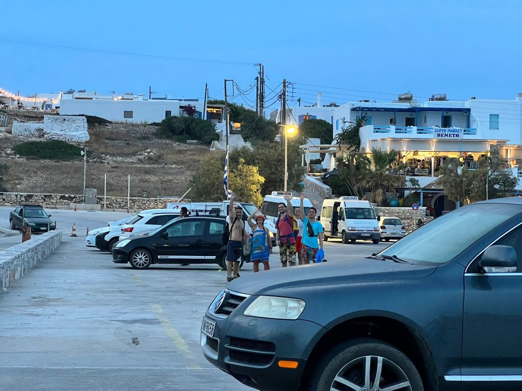 - They arrive at 20h (Johannes a bit nervous because tickets can be changed until 22h), we walk to office, change is done, we all take ferry tomorrow at 1445, speed boat arrives at 19h in Piraeus (5h instead of 9h, so that’s nice)