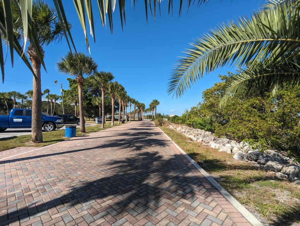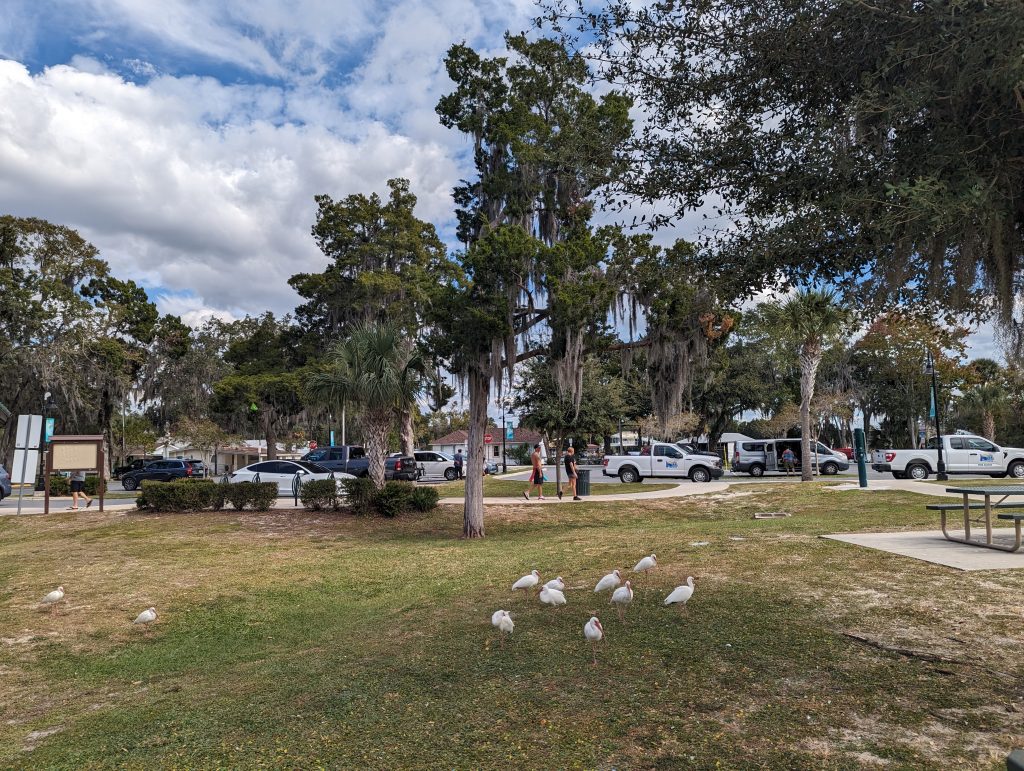 - The “park” is more of a narrow corner without a road, but still right by the water with a mini beach and lots of ibises.