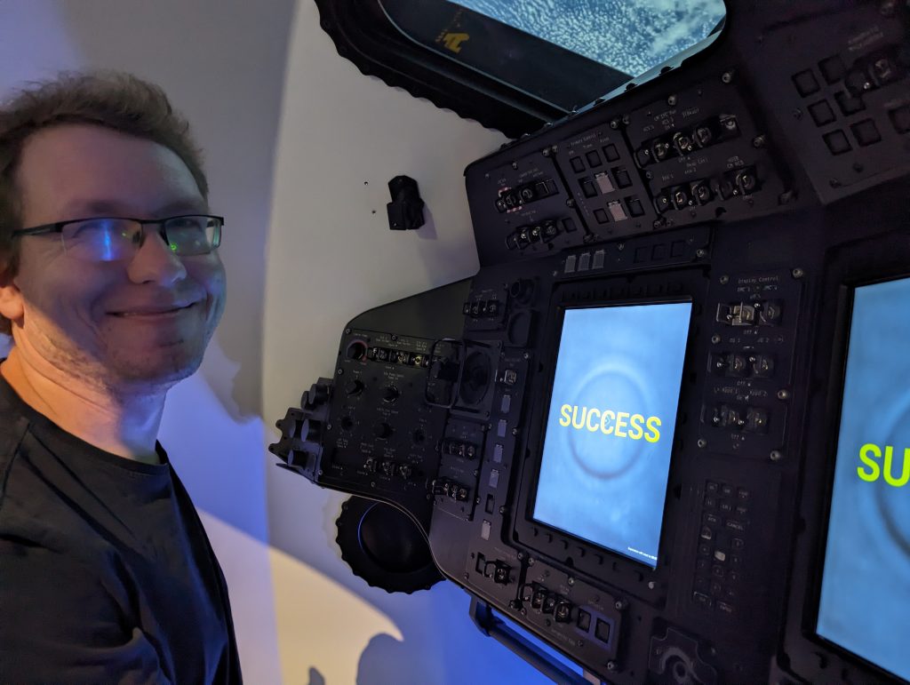 - We queue up and, as we watch the people in front of us, we realise that nobody apart from us seems to have read the instructions, because you don’t actually need to use anything except the one joystick for the docking manoeuvre, which runs smoothly and without alerts – although the thousands of switches and buttons all around are of course extremely tempting.