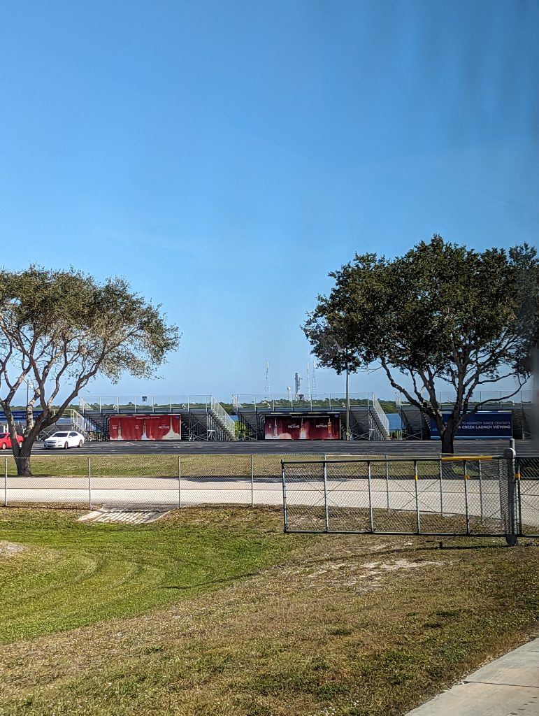 - On the way there, we see (in the distance, of course) the launch pads, which are really hard to miss.