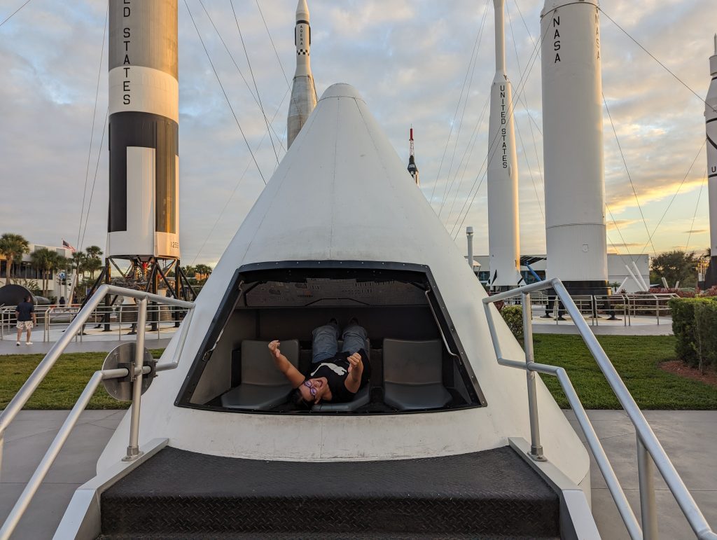- There is an exhibition in honor of the Apollo 1 crew with a command module, which you can enter via the original landing bridge, which is also quite an experience.