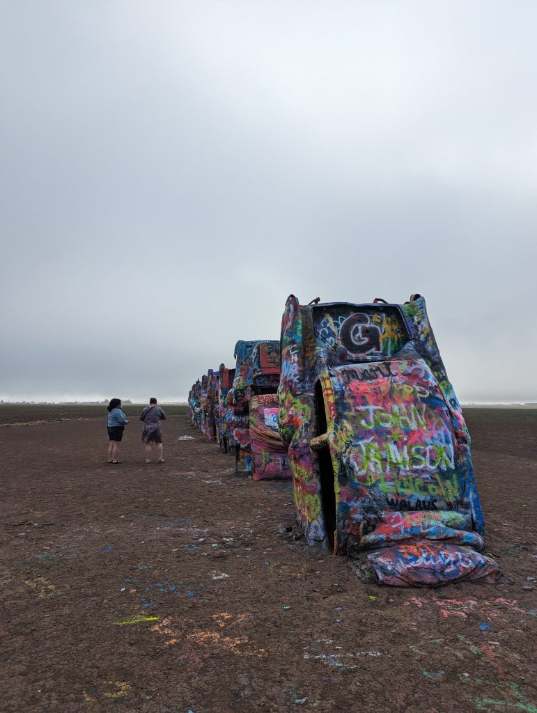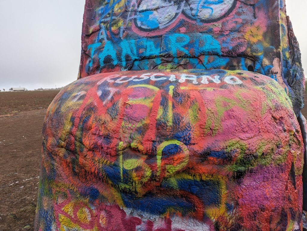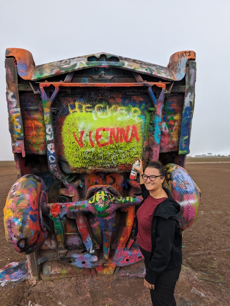 - It’s good manners to “immortalize” yourself at the Cadillac Ranch on one of the Cadillacs with a spray can and some graffiti (“Of course I won’t buy a can if someone comes and sprays over it again anyway”, says Matthäus) – it turns out, as the old couple, who are also travelling Route 66, show us, that you don’t have to buy one at all, but that there are bins full of half-full cans everywhere anyway, which you can help yourself to.