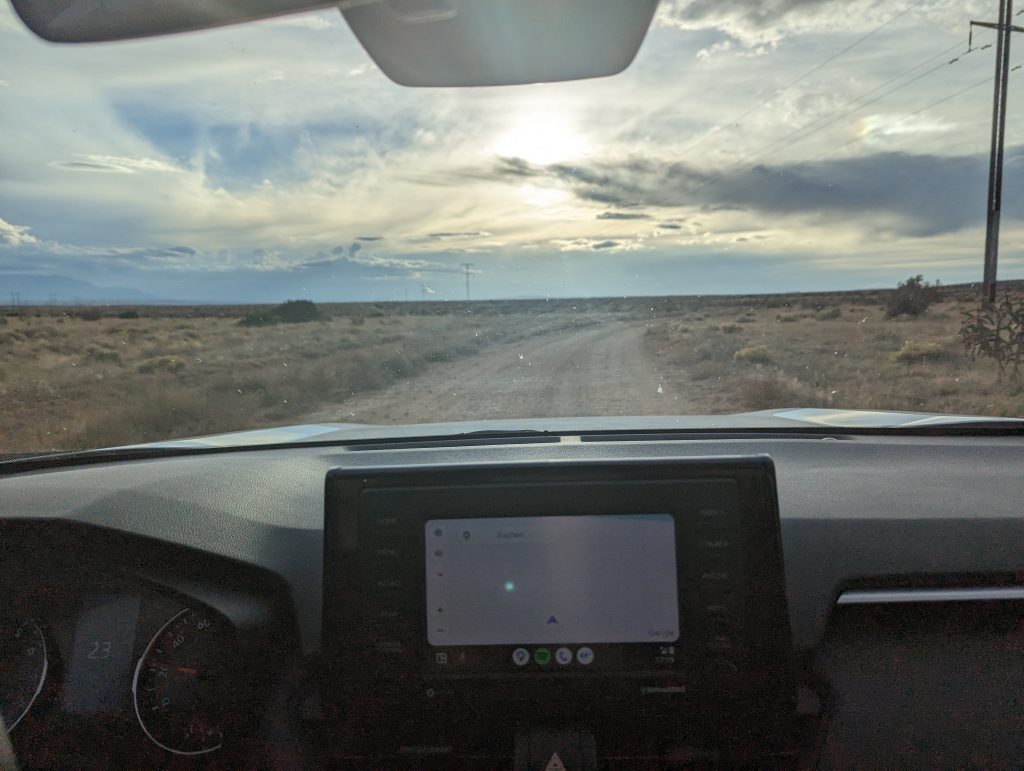 - We continue past some old, abandoned silos and some newer ones that are still in use, past vast expanses of prairie grass and small shrubs, until the first mesas (rock formations) of New Mexico appear in the distance.