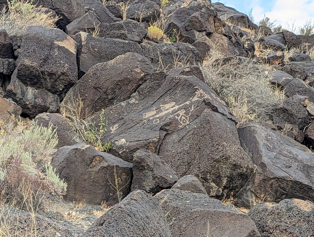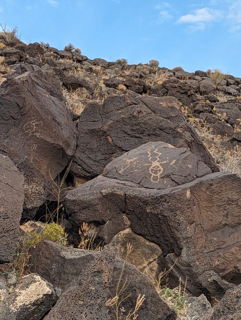 - Our first stop today are the petroglyphs – a collection of stones with aboriginal paintings on them, which you can hike/walk through – which of course we do.