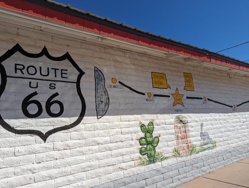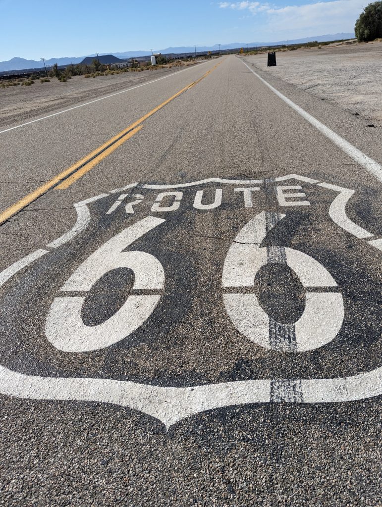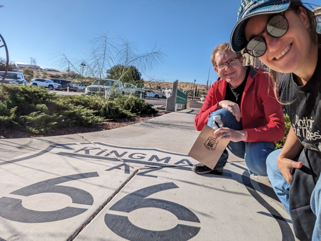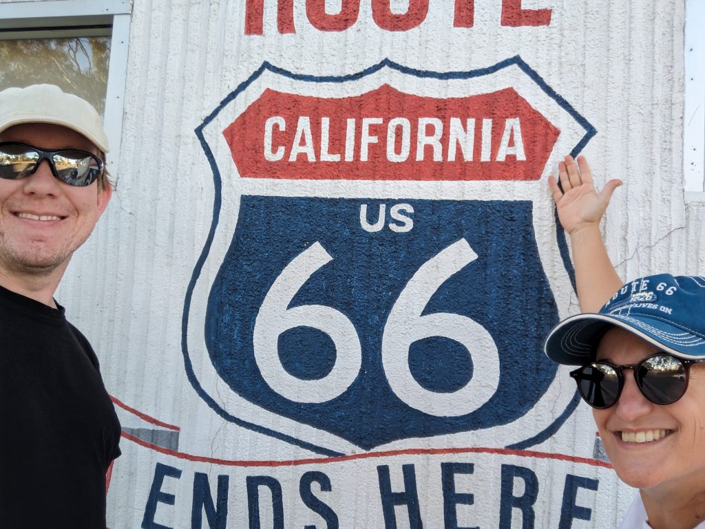 - We also discover are lots of Route 66 signs and references: People even queue up in front of one sign to take a photo with it! It’s a good thing we took our finisher photo at the original end.
