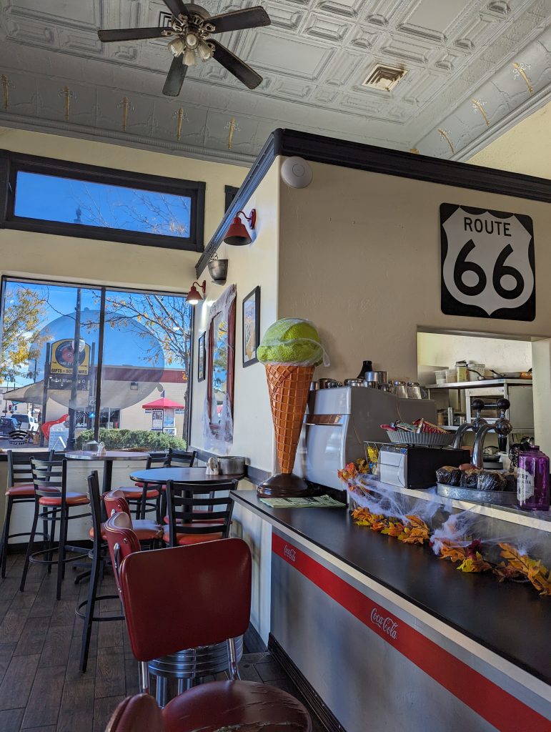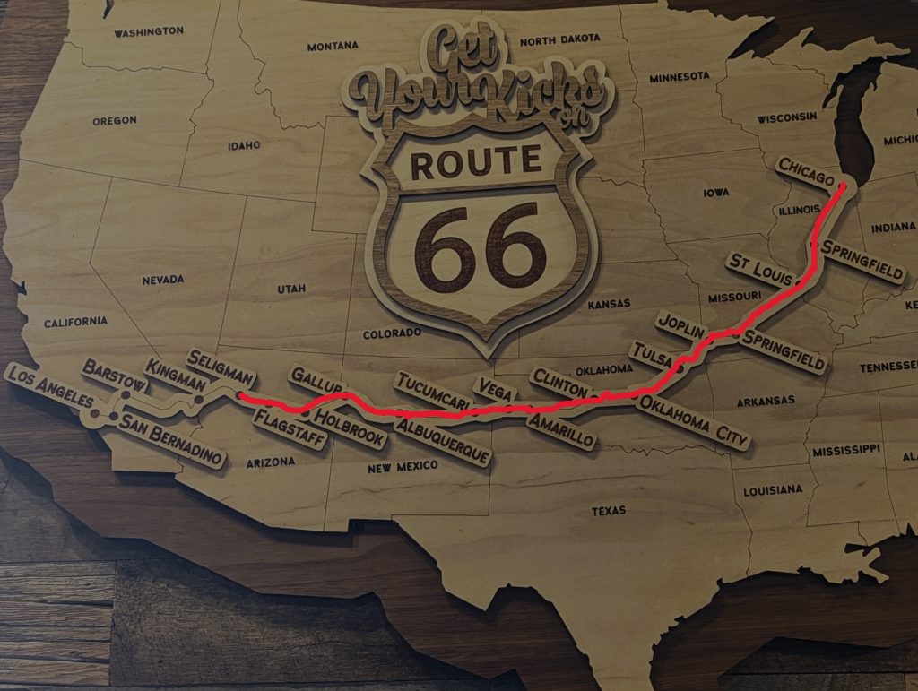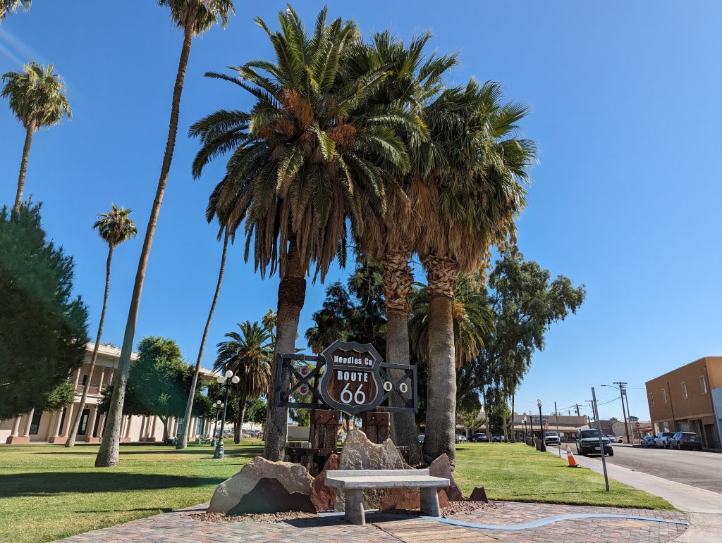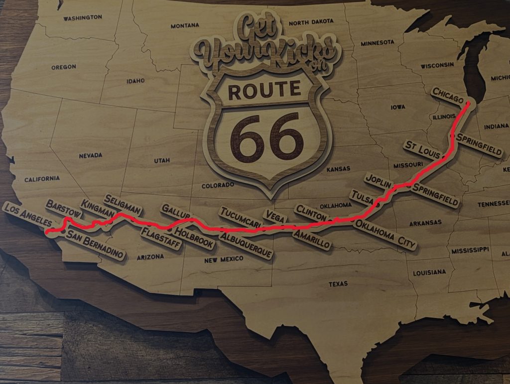 - We also discover are lots of Route 66 signs and references: People even queue up in front of one sign to take a photo with it! It’s a good thing we took our finisher photo at the original end.