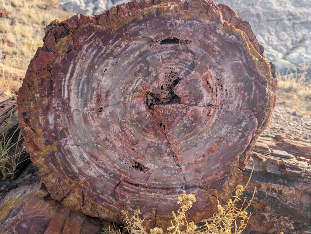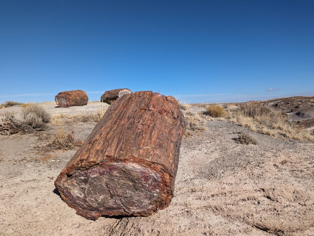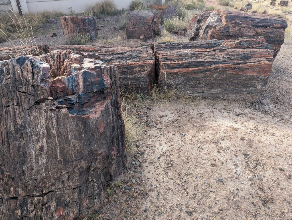 - We learn how the fossilized trees were formed: Around 218 million years ago, the trees stood on a river bed. Trees that had fallen over and been swept away by floods came to rest in the riverbed and over time the tree trunks were buried under a layer of mud and sand due to erosion – especially during floods. This layer had a preserving effect on the wood and thus kept the trunks in their original form. Water containing minerals repeatedly flowed through the layer and thus also through the wood, which stored the minerals that then turned from wood to stone over millions of years. Due to the mud layer and the preservation process, the minerals then took on the exact shape of the wood grain, which means that the tree trunks still look as if they were made of wood.