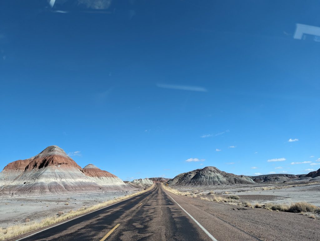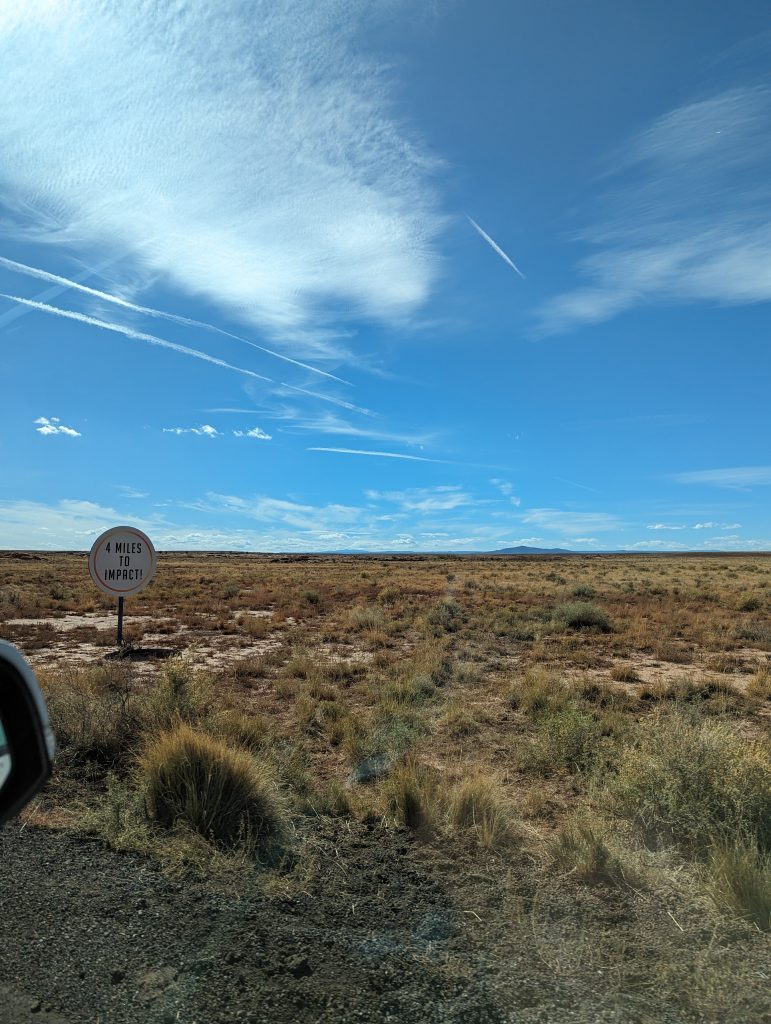 - After buying some groceries at Walmart, we set off in the direction of Petrified Forest National Park. About halfway there we notice that we forgot to get gas and now the fuel gauge shows that we still have “90 miles remaining” – sounds like a lot, but especially on the interstate, we also need a lot.
