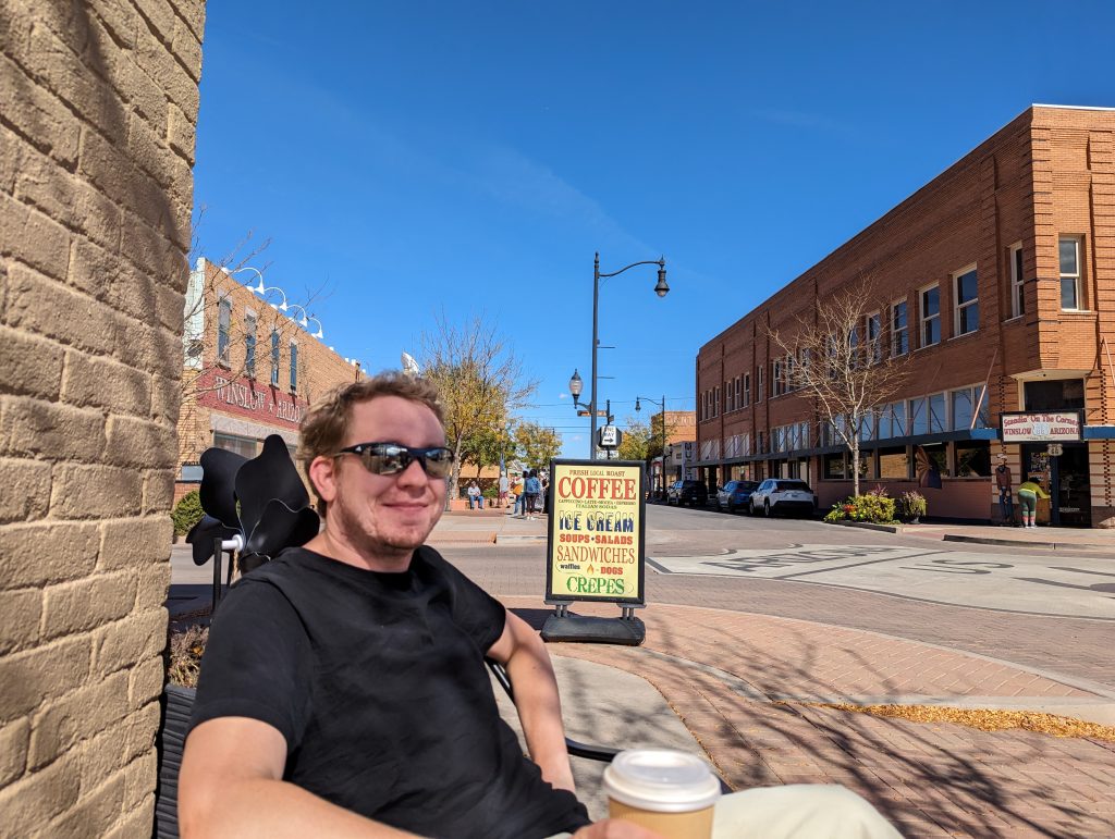 - We watch all of the rumble and action from the opposite side of the street while drinking coffee.