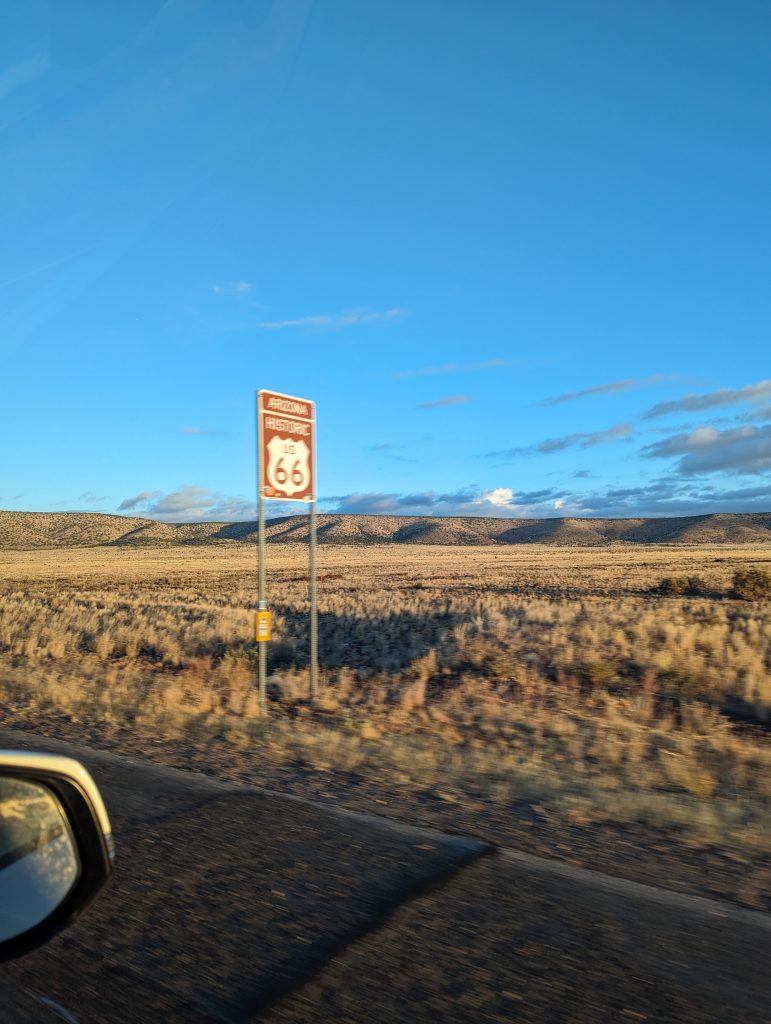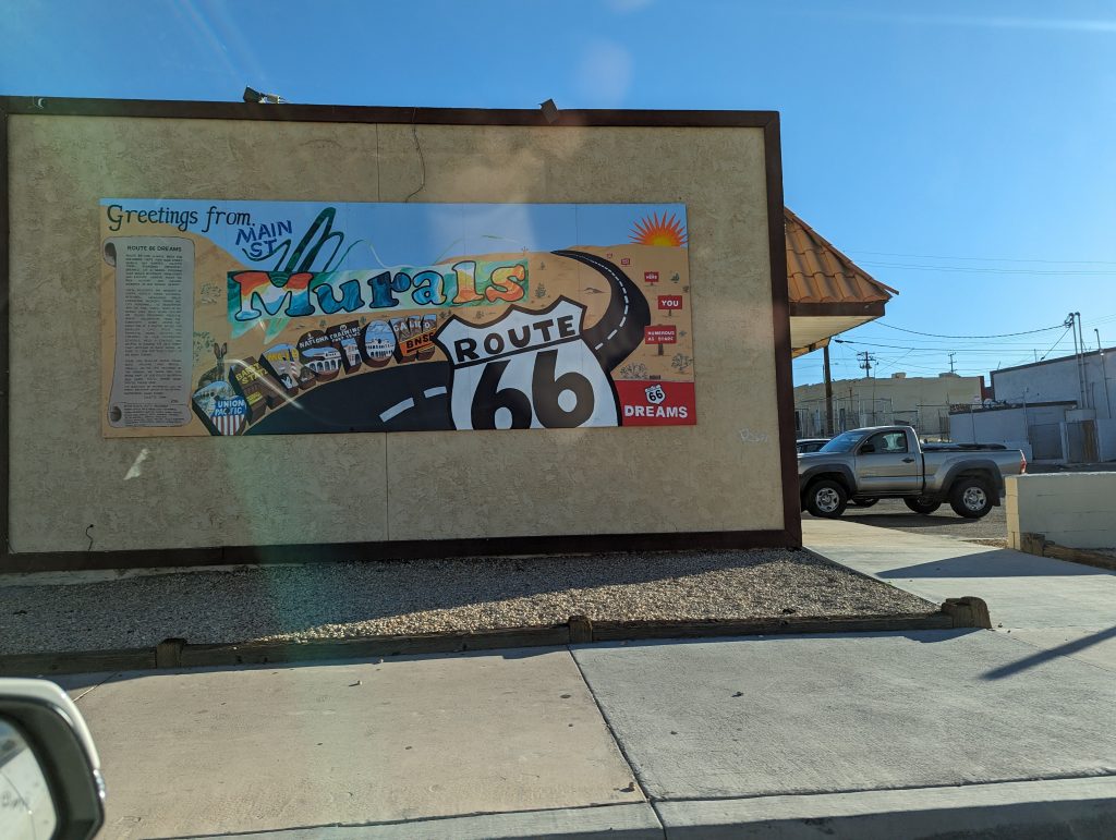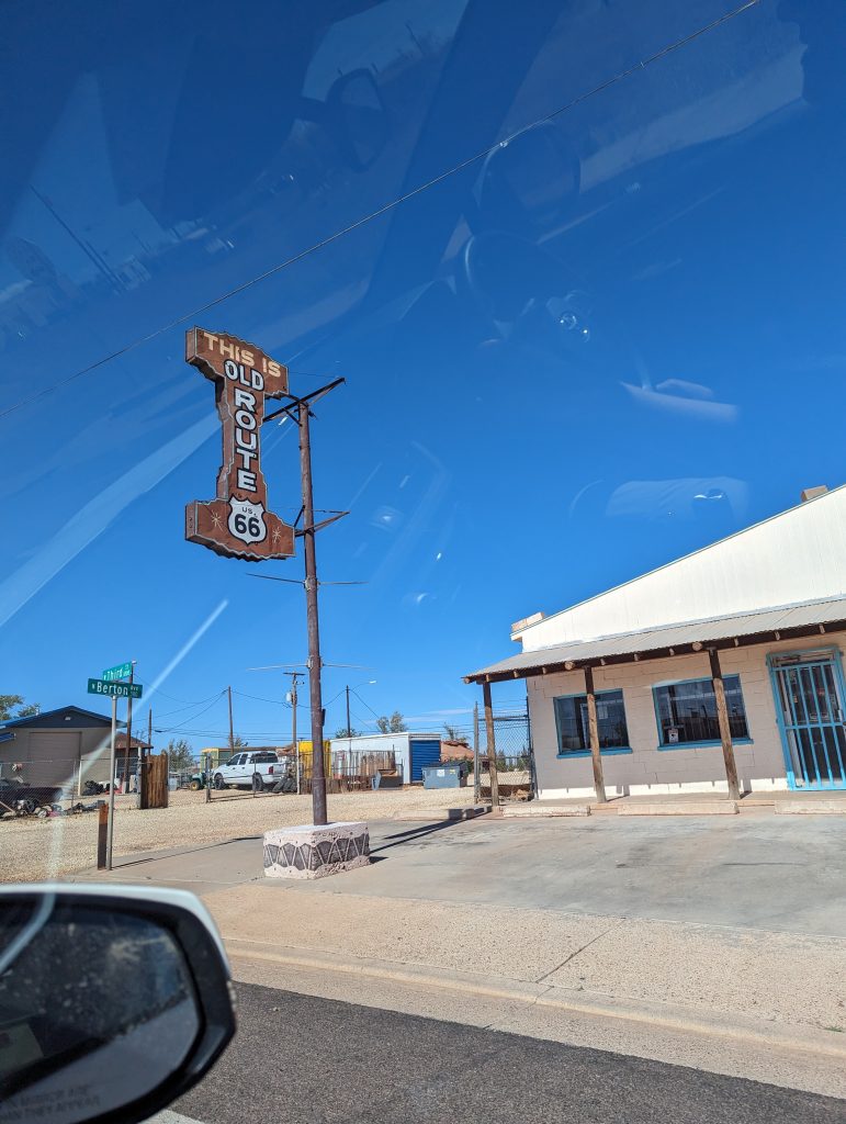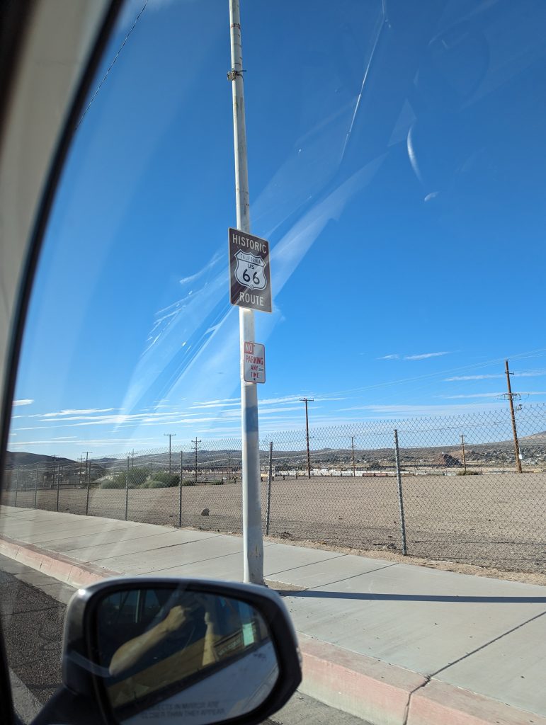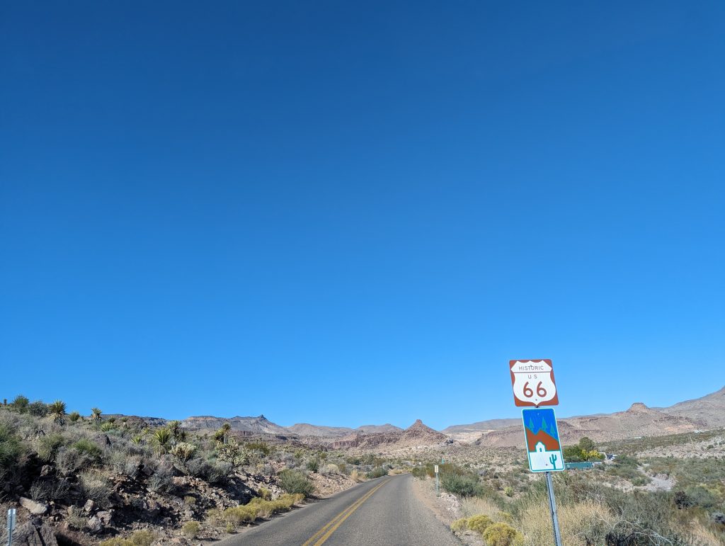 - The road now leads through just as beautiful a mountainous and rocky landscape as yesterday. Also, there are Route 66 signs and instructions everywhere along the road.