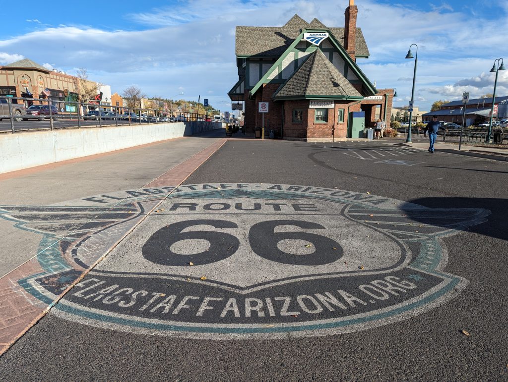 - Shortly after, we reach the real train town of Flagstaff, which is also the gateway from Route 66 to the Grand Canyon. This is about 60 km north of here, but as we have already visited it with Julian, we decide to skip it and instead continue on the route 66.