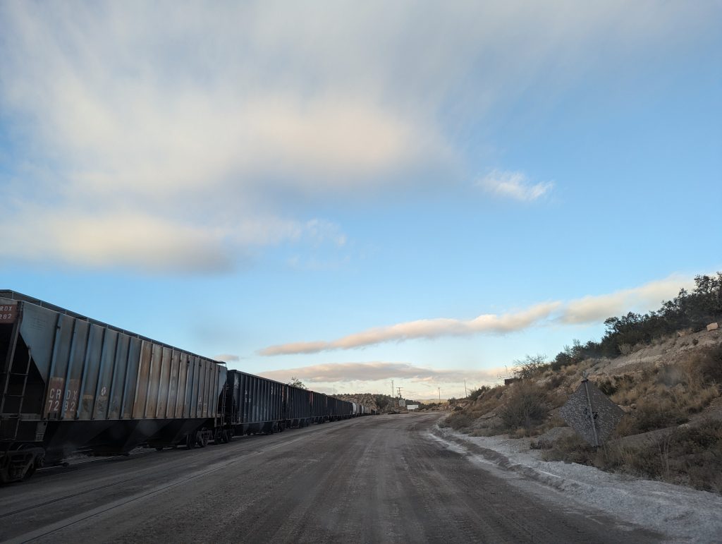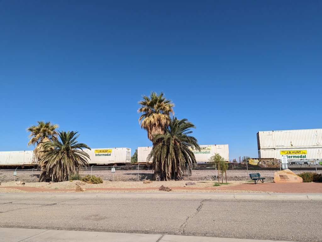 - We pass an abandoned petrol station – like many along Route 66 – and our road leads along the railroad route again, which is of course great as we constantly see trains rattling past, which I diligently photograph and film to then send the material to Sebi, who is very fond of trains.