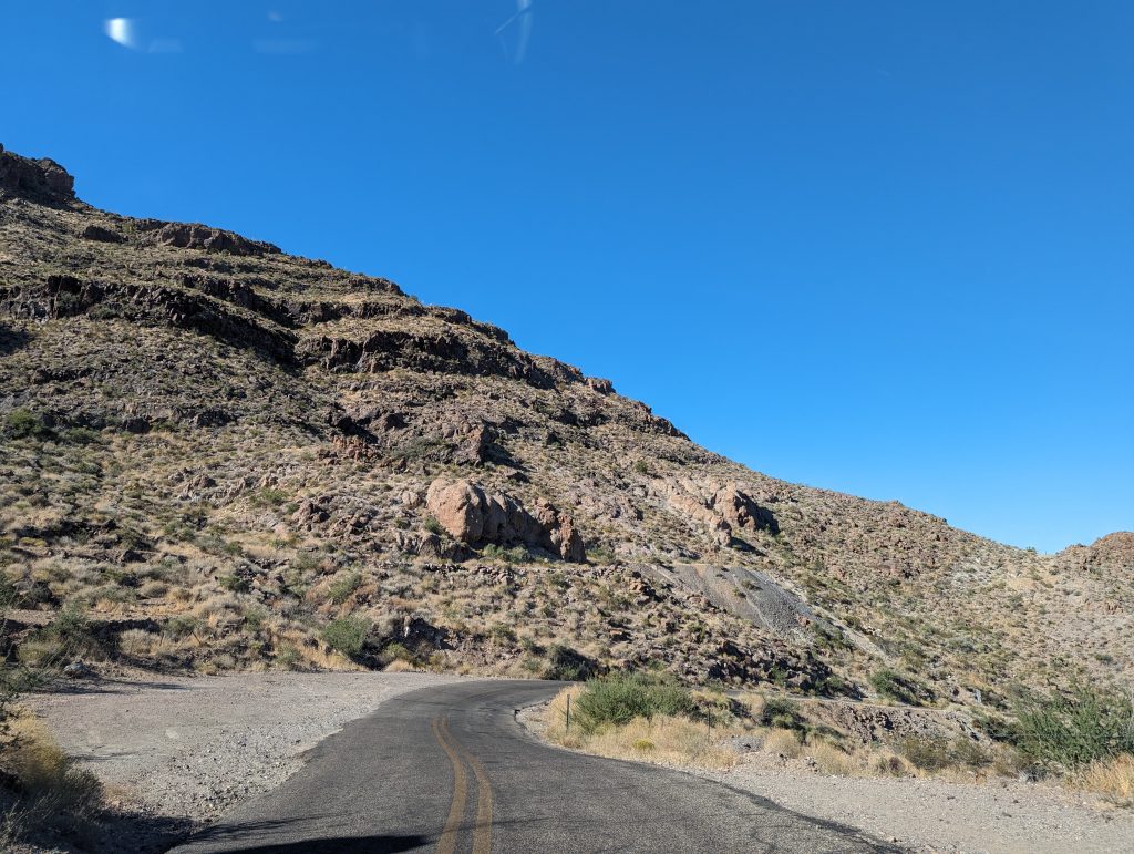 - We continue through the increasingly hilly desert and through lots and lots of nothing – very scenic nothing.