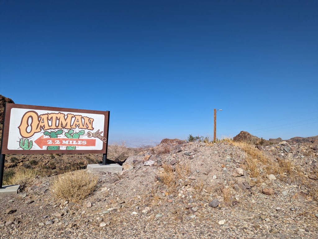 - We drive over the historic Black Mountain Pass, which takes us through the village of Oatman. The village is famous for the wild donkeys that roam freely here and especially like to chill out on the road, which is why you should drive extra slowly around every bend.