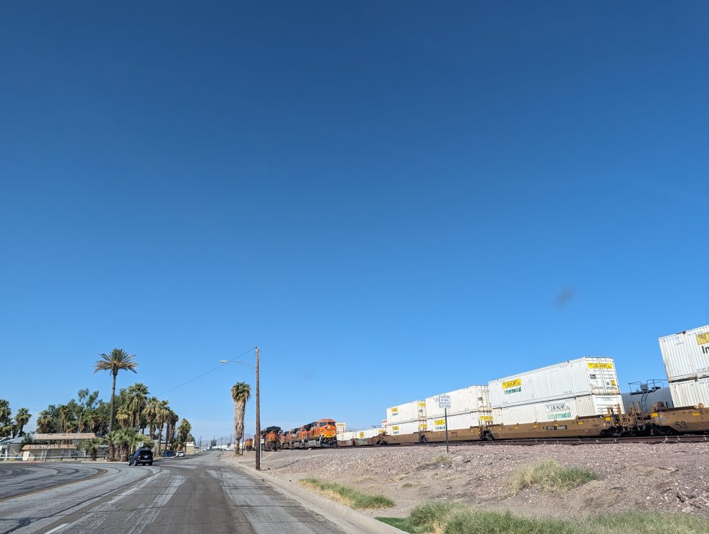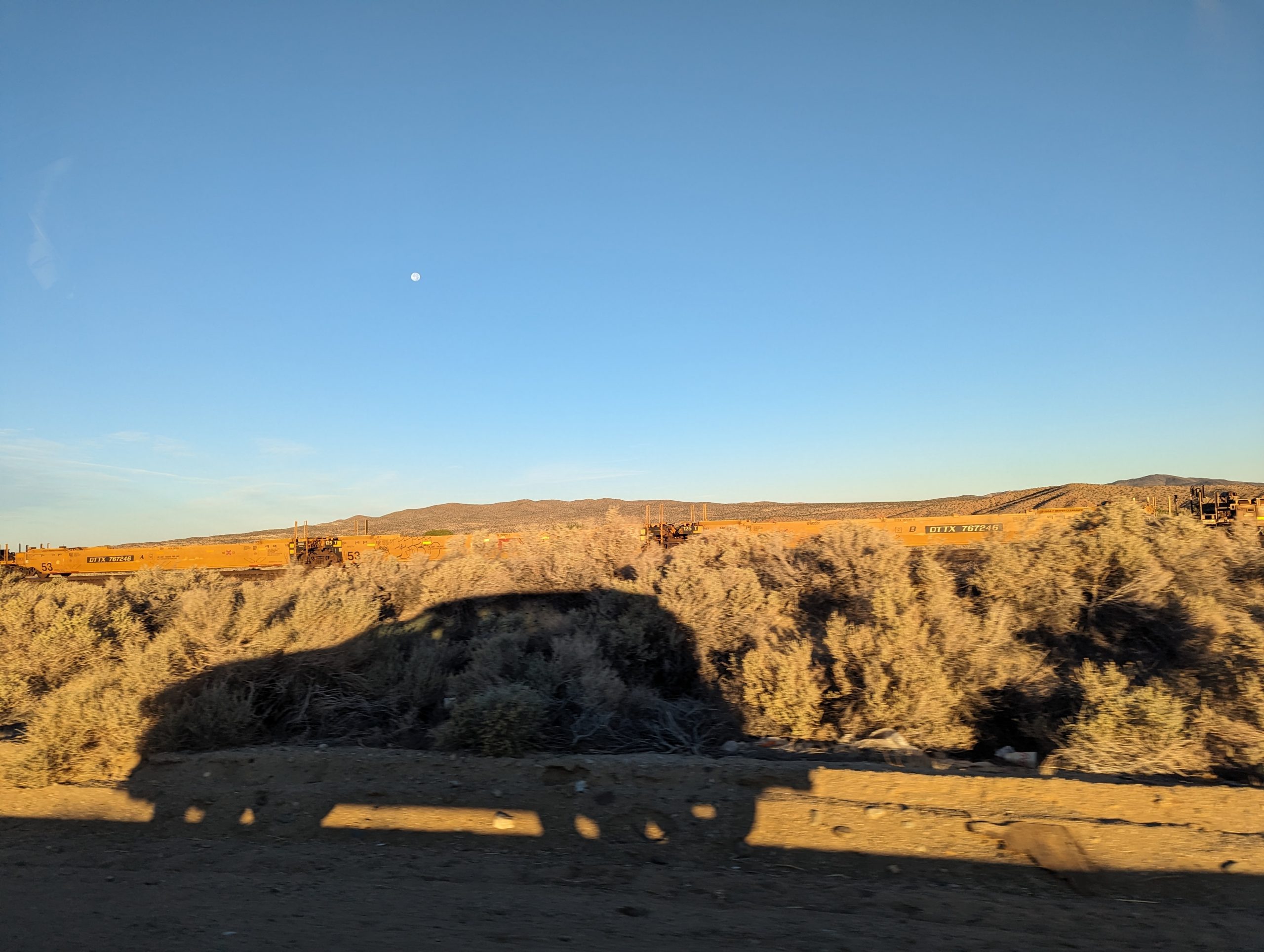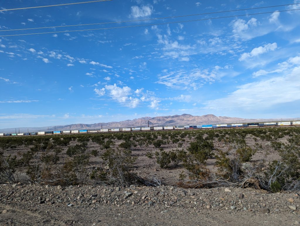 - We continue through the Mojave Desert and always along the Santa Fe railroad line, which has been with us since – wait for it – Santa Fe.