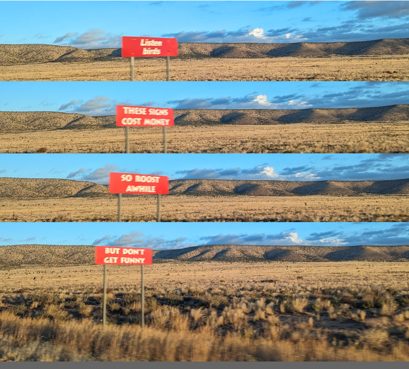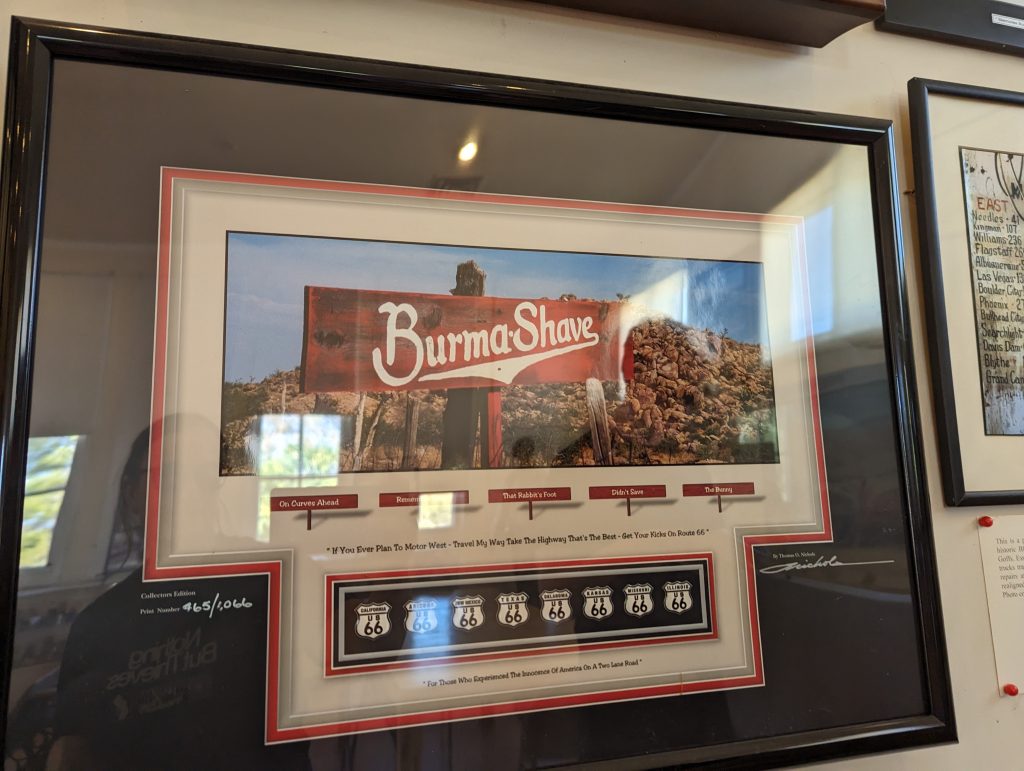 - Soon the famous red Burma Shave signs appear on the roadside, which I vehemently refer to as “Burma Sharma” – no one knows why…