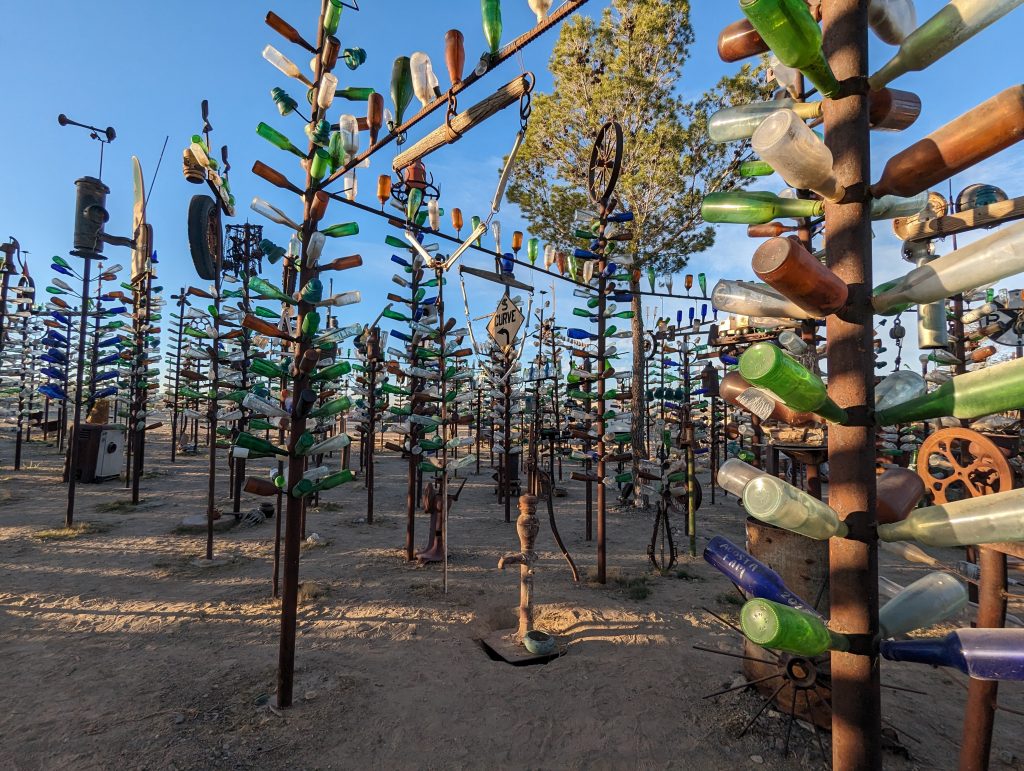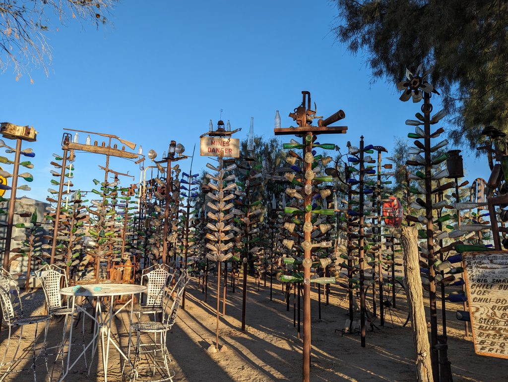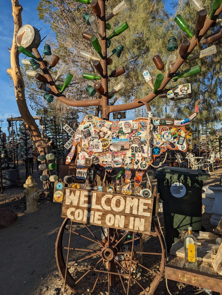 - At first it looks very closed and we almost don’t dare enter the grounds, but the numerous “Welcome” and “Come in!” signs convince us and we stroll through the bottle sculptures that seem to stretch endlessly across the area – fascinating.
