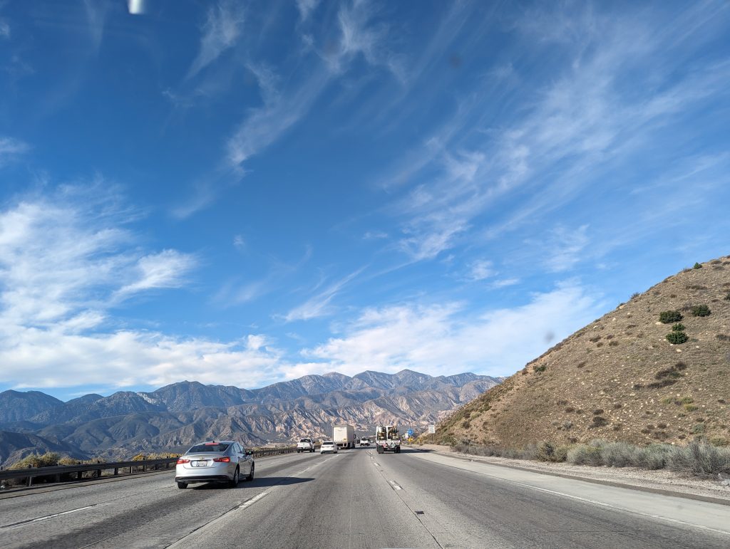 - After we have crossed the pass, the road leads downhill towards San Bernadino, the first suburb/foothills of Los Angeles, where immediately the traffic gets heavier.