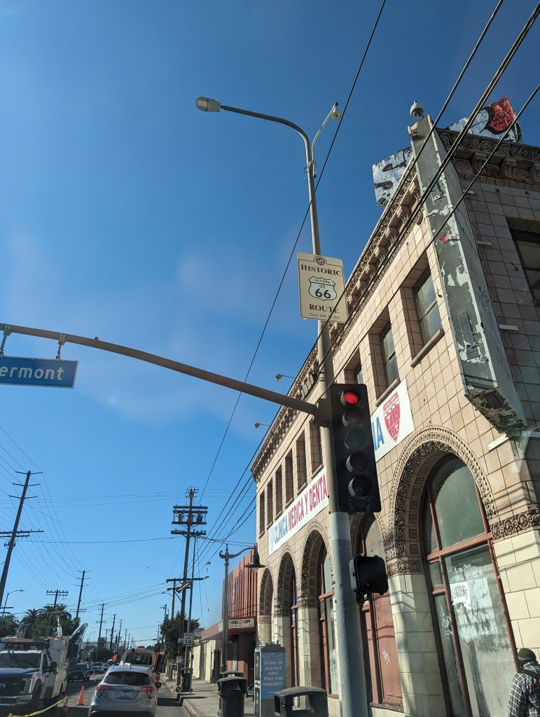 - Next we reach Pasadena and via Broadway Los Angeles Downtown, where the original Route 66 ended (which is only recognizable thanks to a very small sign).