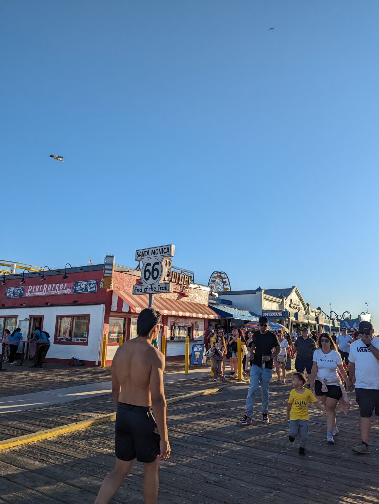 - We park nearby and walk back to take our finisher photo – as we did at the start – before heading into the hustle and bustle of the Santa Monica Pier.
