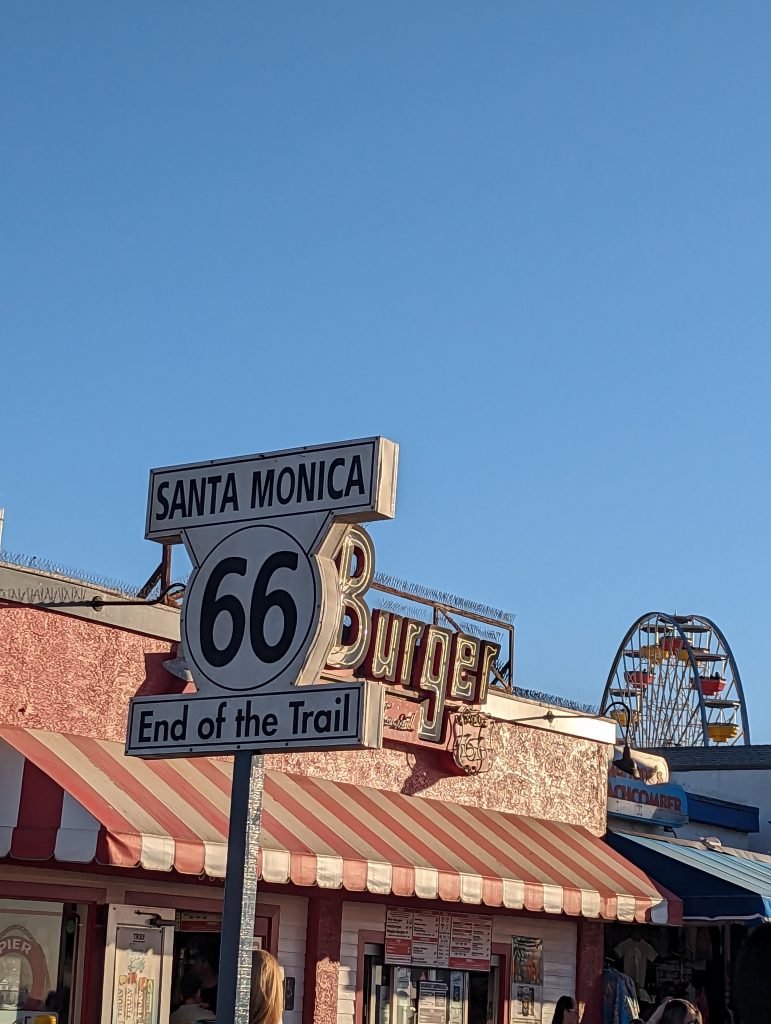 - We don’t linger too long before we set off along Santa Monica Boulevard on the last few miles of the route almost to the coast: Route 66 ends shortly before at a crossroads.