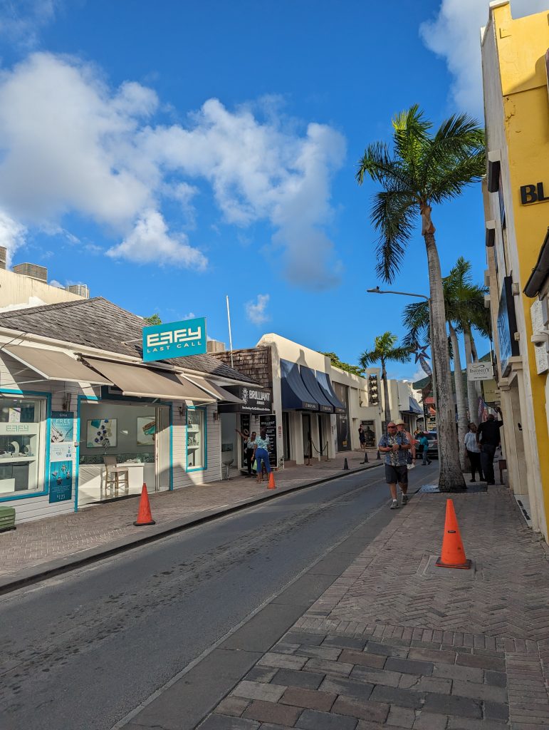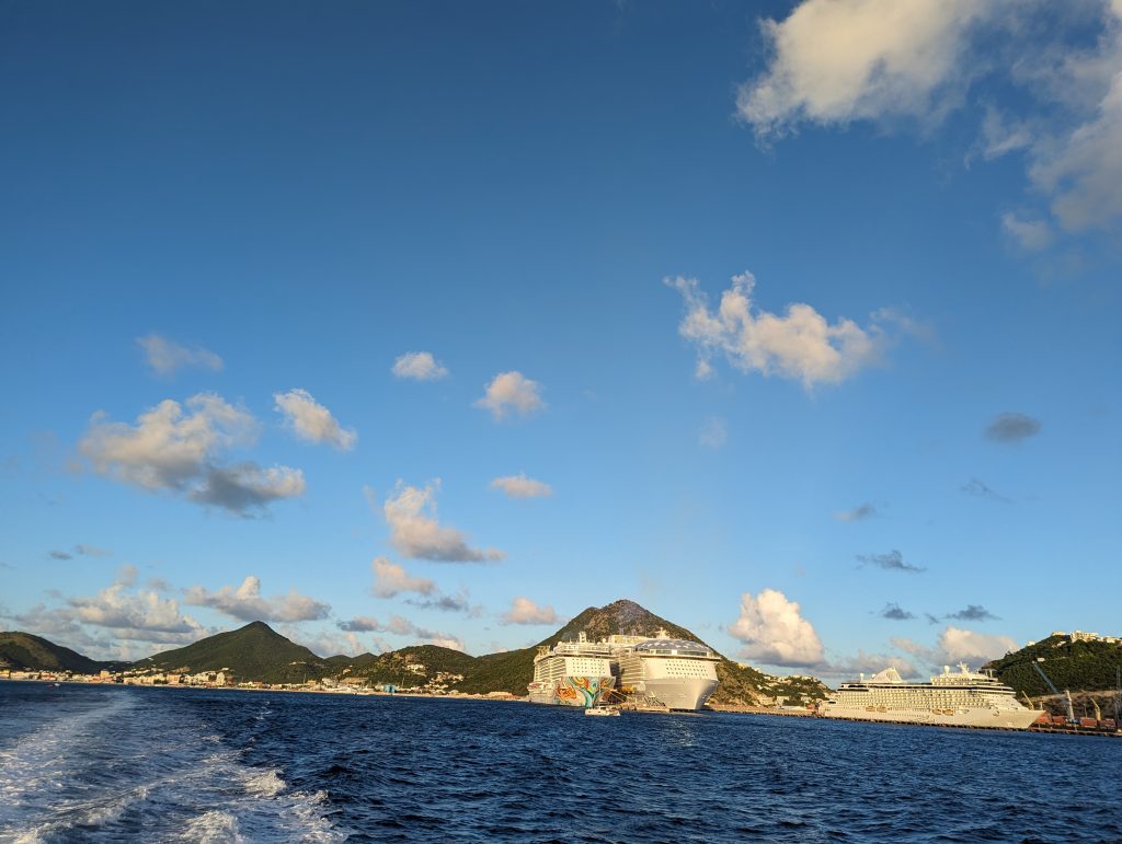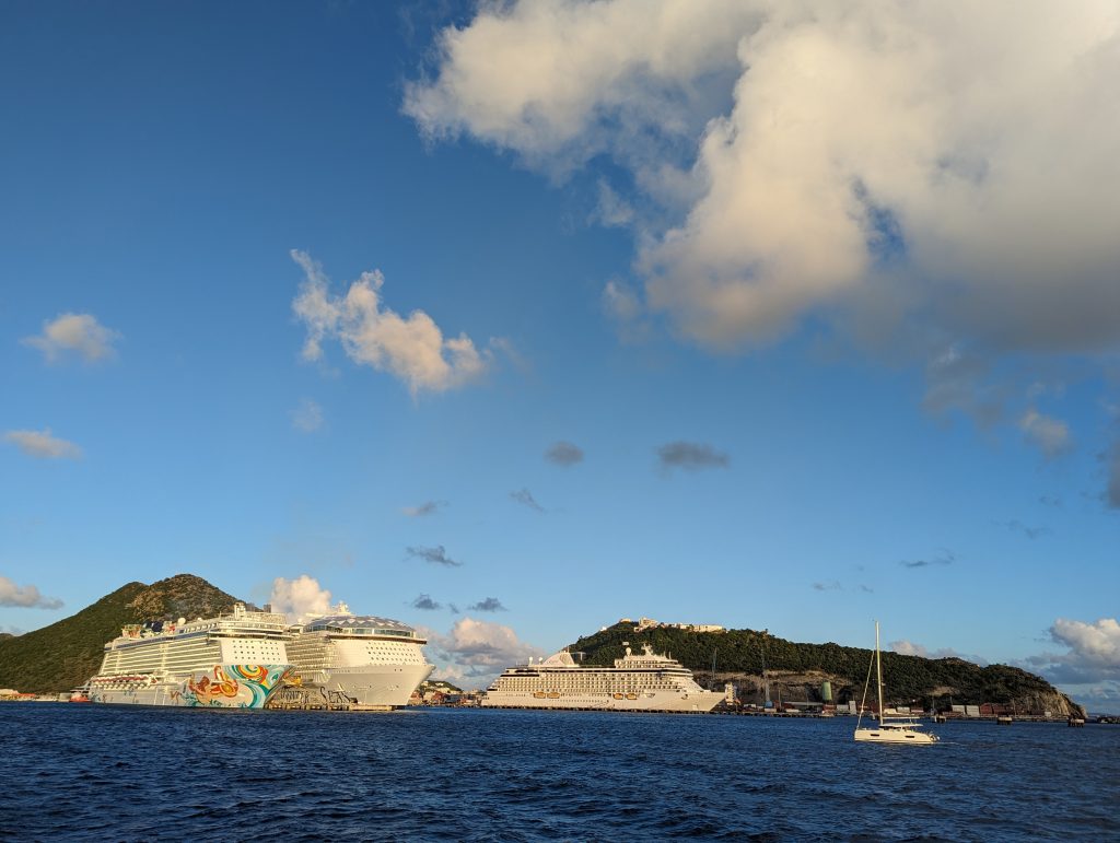 - We reach Philipsburg, the large harbor town where the cruise ships dock, three of which are arriving today.