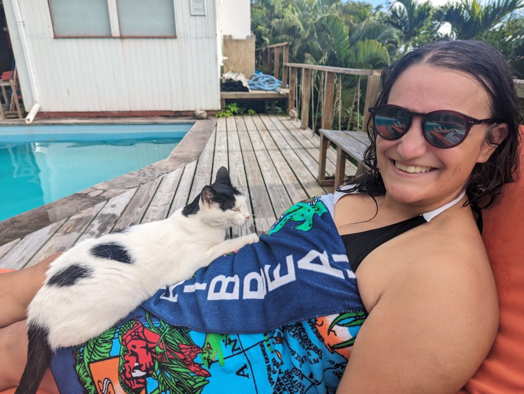 - He tells us how everything works, shows us where to have breakfast, how to take a shower (there is no running water), how to use the compost toilets (although he is very reassured when we tell him that we have just spent 10 days on the sailing ship, so the concept is not new to us) and then adds: “We have a cat and she is just looking for love⊔ and after a short pause, “But aren’t we all?”