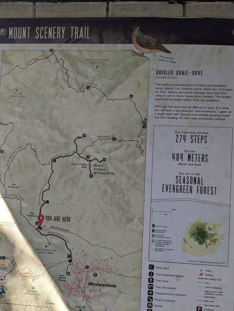 - Our plan is to walk along the Sandy Cruz Trail, which leads around Mount Scenery and is supposed to offer great views.