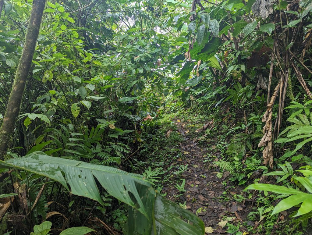 - Here the path leads through dense rainforest – one of the oldest pieces of rainforest on the island.