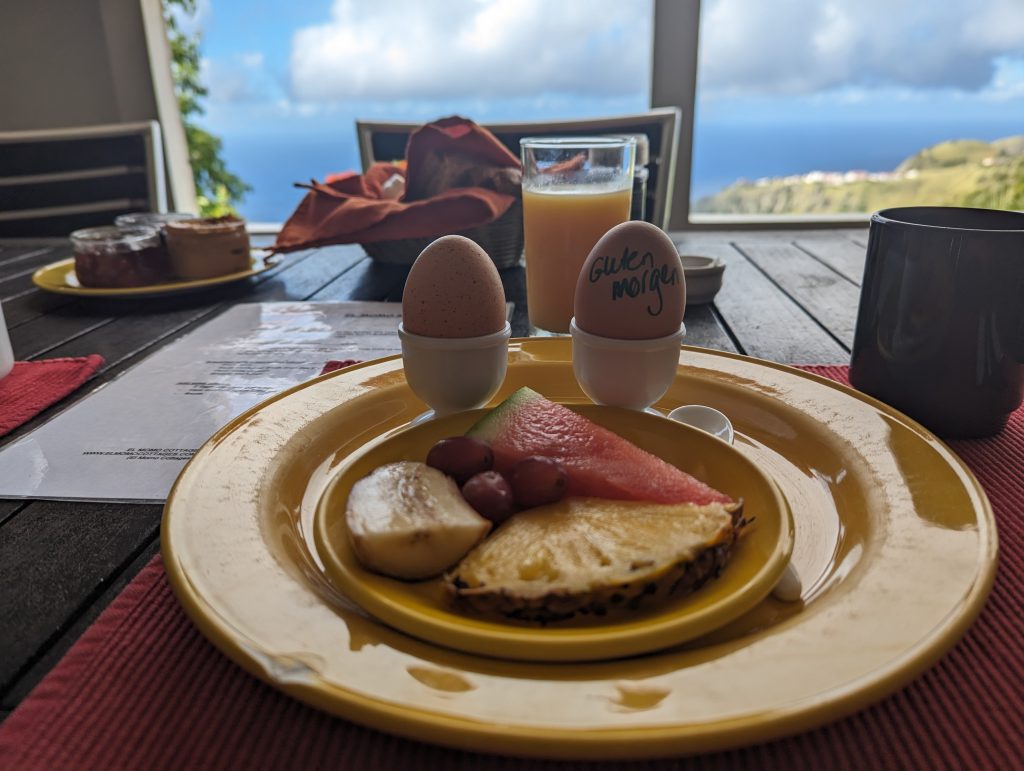 - Today we enjoy the really tasty El Momo breakfast for the first time – with fresh fruits, njam!