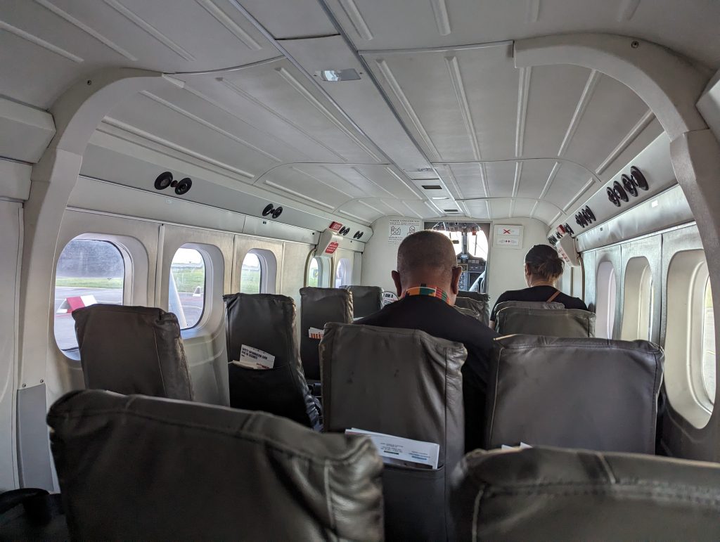- Speaking of small planes: the plane we are flying in, a DHC-6, has just 19 seats and there are only four of us. Plus the pilot and co-pilot, of course – cool!