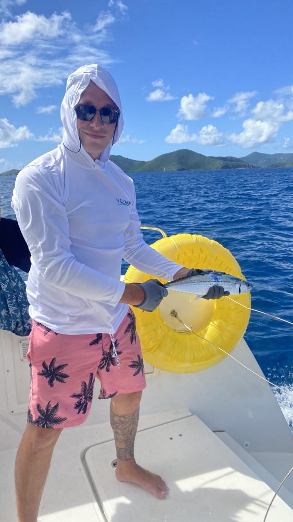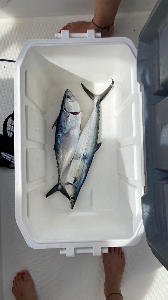 - And less than three minutes later: a tuna bites! The fishing line wasn’t even fully out yet.