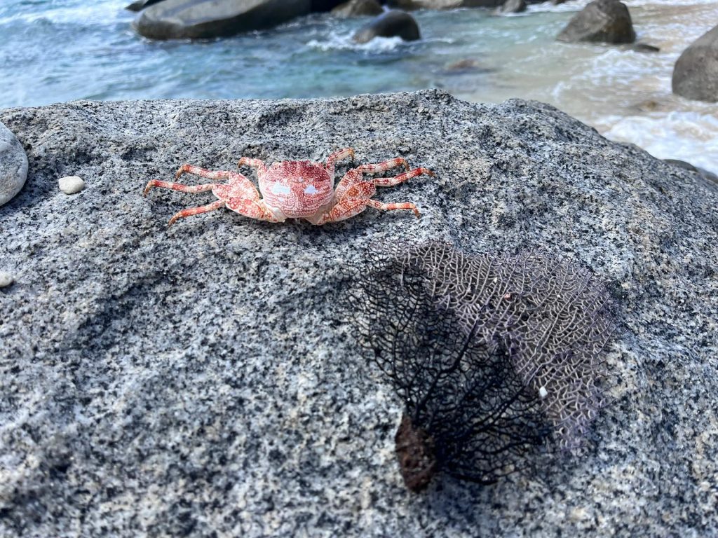 - We also spot hermit crabs and small, almost transparent crabs that you can barely see as they run across the sand (or do the typical crab move).