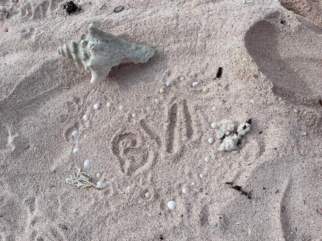 - Someone has also laid a stone circle in the sand.