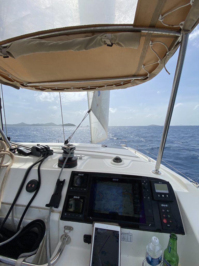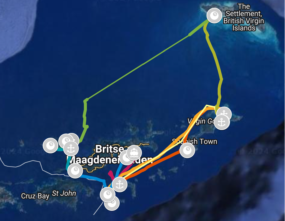 - We continue – under sail – on an upwind course to Tortola, into a bay near a restaurant, where we have dinner tonight.