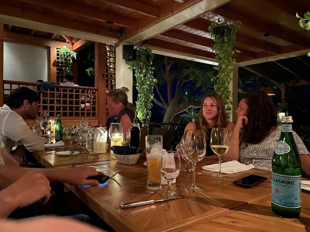 - Off we go to another café right by the harbor, where we meet up with our sailing crew.