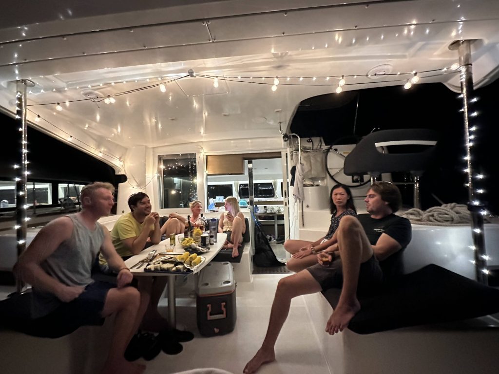 - Our skipper Nicole had warned us beforehand that you shouldn’t swim here at night because that’s when the sharks hunt.