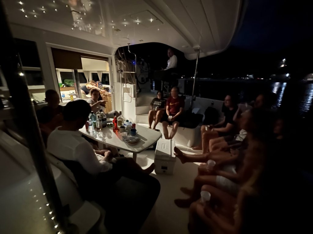 - I’m not in the mood for alcohol today anyway, but one group is still motivated and takes the dinghy to the other boat, which is moored at a buoy next to us.