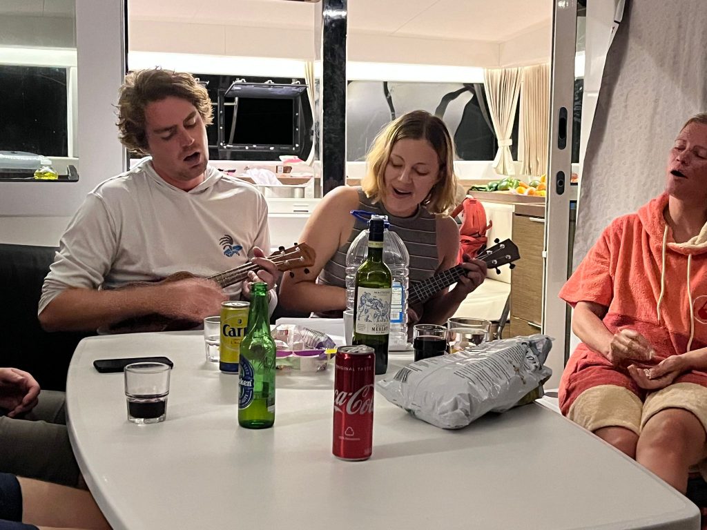 - In the evening, we all meat up on the other boat, Nicki and Leon unpack their ukuleles and we start singing together – mega! Campfire atmosphere without a campfire.